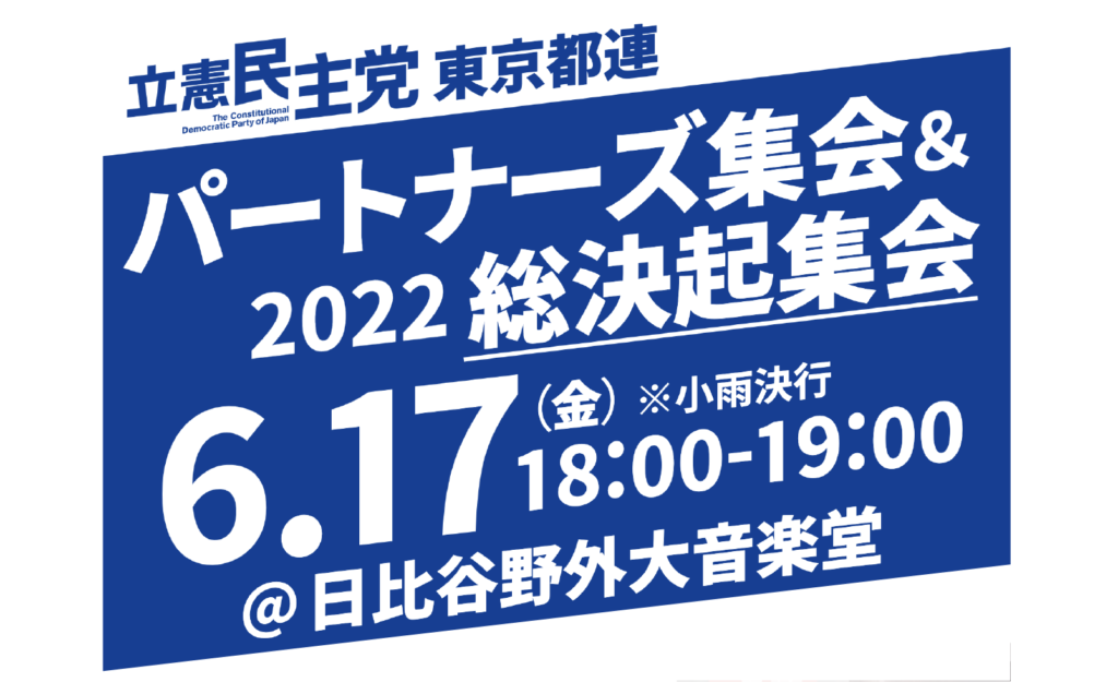 6月17日(金) 立憲民主党東京都総支部連合会主催、パートナーズ集会&2022総決起集会の開催が決定…
